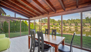 Ponúkame na predaj kompletne zariadenú a zrekonštruovanú rekreačnú vilku s veľkou presklenou terasou a nádherným výhľadom na jazero. Nehnuteľnosť sa nachádza v exkluzívnom rezorte rekreačných viliek pri dvoch 18-jamkových golfových ihriskách, v blízkosti obce Šajdíkove Humence, len pár minút od mesta Senica.